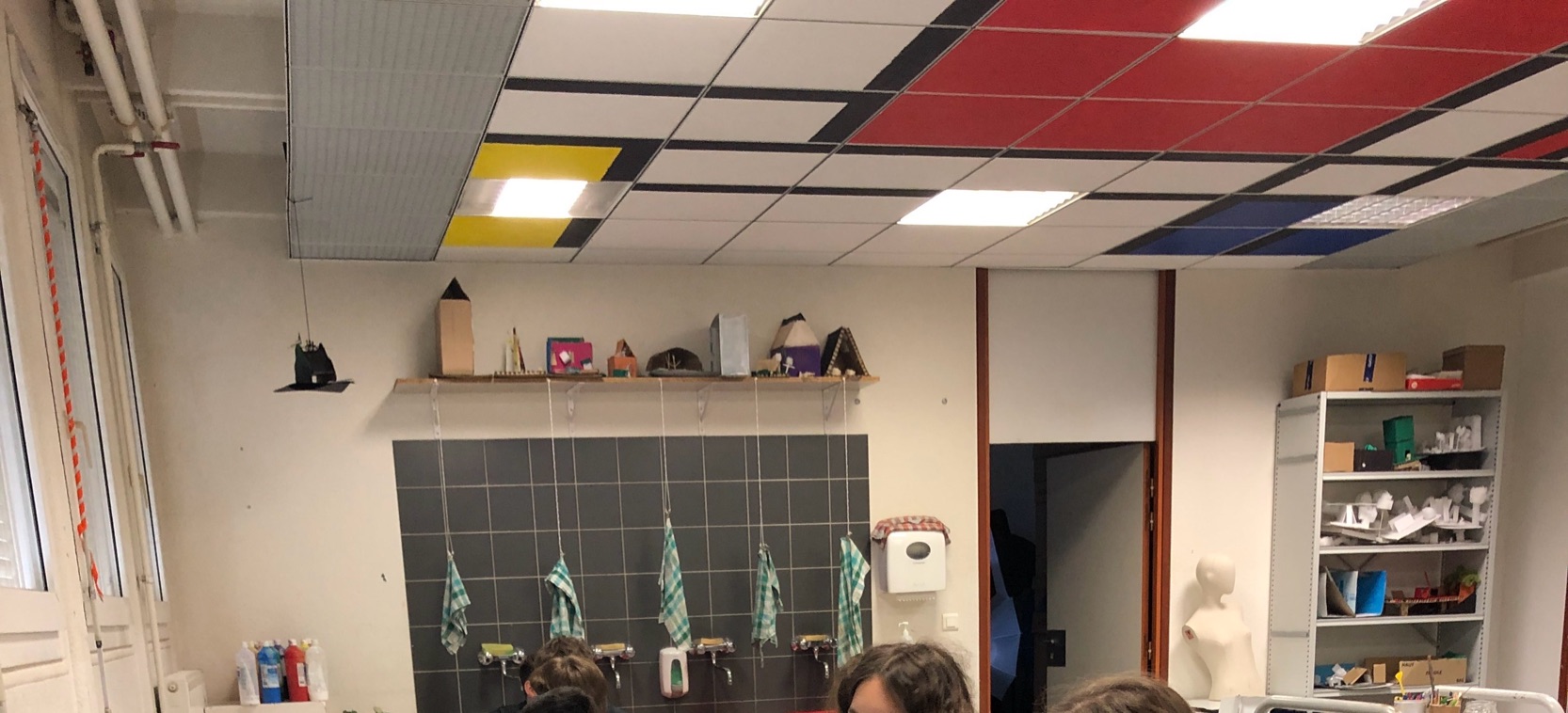 Ein besonderer Schwerpunkt liegt in diesem Jahr auf gemeinsamen künstlerischem Tun. Denn Kunst braucht keine Worte um sich zu verständigen und baut somit Brücken beim Kennenlernen. Außerdem soll während des Austauschs etwas Gemeinsames entstehen. In Anlehnung an die fachspezifischen Deckenbemalungen in den Klassenräumen des Collège Molière haben die Schüler*innen in gemischten Gruppen Entwürfe für eine deutsch-französische Wandmalerei entworfen, die beim Gegenbesuch umgesetzt werden soll.