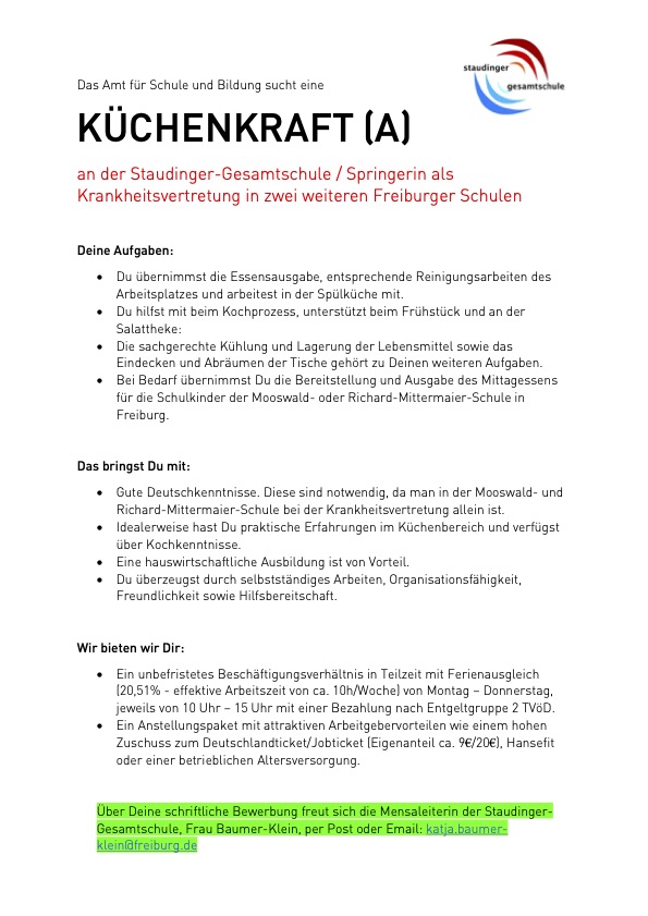 Das Amt für Schule und Bildung sucht eine KÜCHENKRAFT