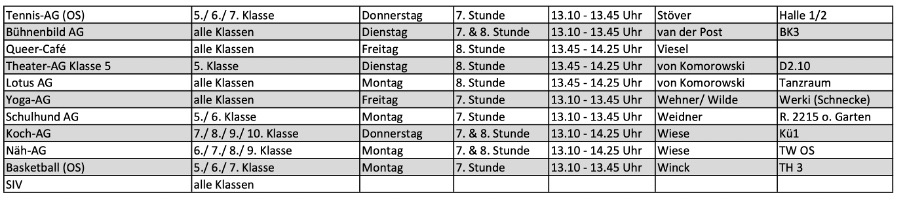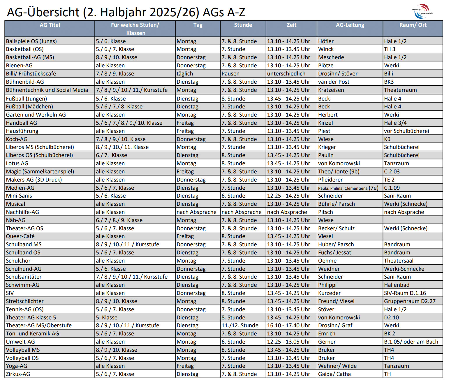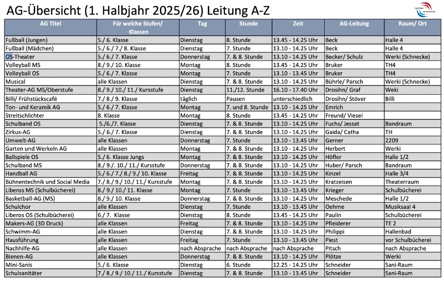 Die Staudi-Arbeitsgemeinschaften im Halbjahr 24/25 im Überblick:
