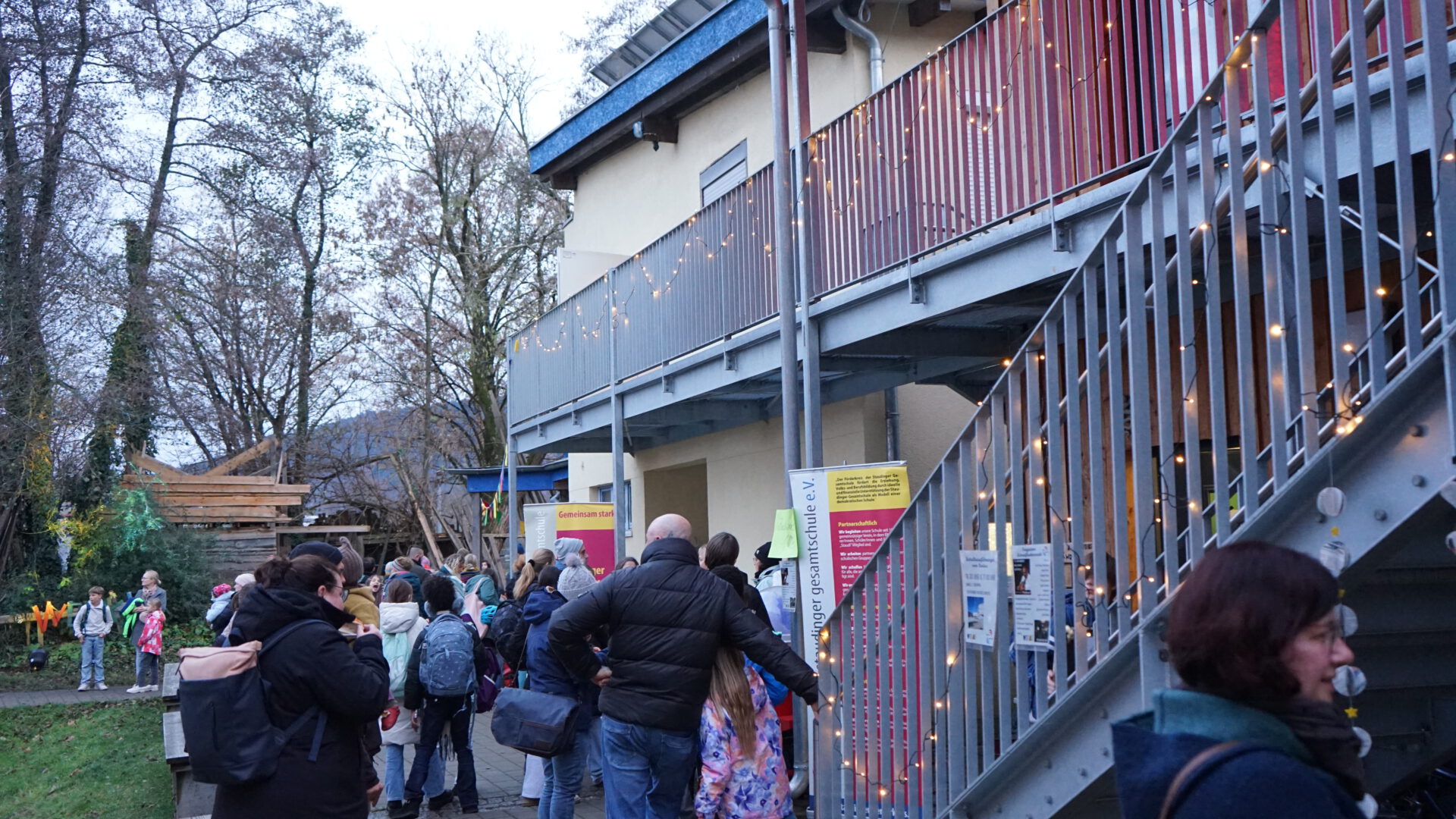 Am 05.12. fand der mittlerweile fast schon traditionelle Schneeflockenmarkt auf dem Werki statt. Dieses Jahr kam hinzu, dass es auch im Neubau verschiedene Angebote gab. Essen und Trinken organisierten in erster Linie die Schüler:innen der K1 und K2. Das Werki-Team sorgte für eine stimmungsvolle Atmosphäre mit bunten Strahlern und mehreren Feuerkörben. So konnten dieBesucher:innen Teile unseres Schulgeländes in typischem Weihnachtsmarktflair genießen. Im Schulgebäude konnte man Getränke, Waffeln, Kuchen und Kaffee kaufen. Darüber hinaus gab es dort Angebote wie Kinderschminken oder Bastelaktionen. Dankenswerter Weise erklärten sich Schüler:innen der 7. Klasse bereit mit Begleitung von Schüler:innen aus der Oberstufe Hausführung anzubieten. Somit konnten interessierte Eltern einen Blick in die verschiedenen Fachräume und die Bereiche des Ganztags werfen. Auf dem Werki Gelände gab es Würstchen, Glühwein, Punsch sowie leckere Crêpes. Auch der Pizzaofen wurdeschon morgens angefeuert und die fleißigen Bäcker:innen servierten stundenlang Pizza um Pizza. Am Feuer konnte man in kleinen Metallkörbchen am Stock sein eigenes Popcorn zubereiten oder einfach nur in die knisternde Glut blicken. Verschiedene AGs nutzten den Schneeflockenmarkt um ihre Produkte zu präsentieren. Deshalb gab es die Möglichkeit schuleigenen Honig zuprobieren und möglicherweise zu kaufen, Weihnachtsschmuck zu erwerben, der von Schüler:innen der 8. Klasse aus Zeitungengebastelt wurde, oder von der Schulgarten-AG Ableger von verschiedenen Pflanzen zu erstehen. Im Gebäude des Werkis gab es Linoldruck gleichzeitig konnten gegen eine kleine Spende Vesperbrettchen mit eingebranntem Werkilogo erworben werden. Seine Kraft und Geschicklichkeit konnte man beim Nagel versenken mit der Spitze des Hammers beweisen. Auch für die Ohren gab es musikalische Leckerbissen wie die Staudi-Singers und Sintimusik von Angelo Brand. Die glücklichen Gesichter von Groß und Klein und die teils langen Schlangen an den Ständen zeigten, dass der Schneeflockenmarkt auch dieses Jahr eine gelungene Veranstaltung war.