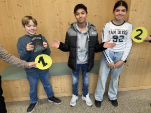Die Gewinner/in des Vorlesewettbewerbs 2025 sind: Platz: Moritz Littin (6a) Platz: Alyssa Yacub (6b) Präsentiert von Ibrahim Tahiri, Gewinner 2024 (7f).