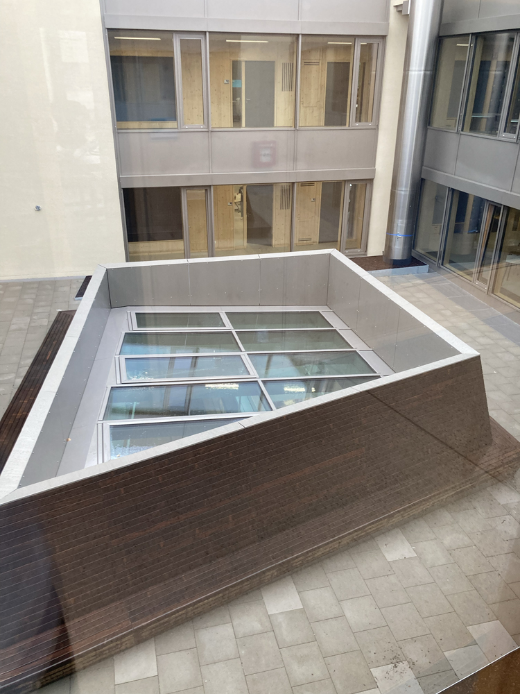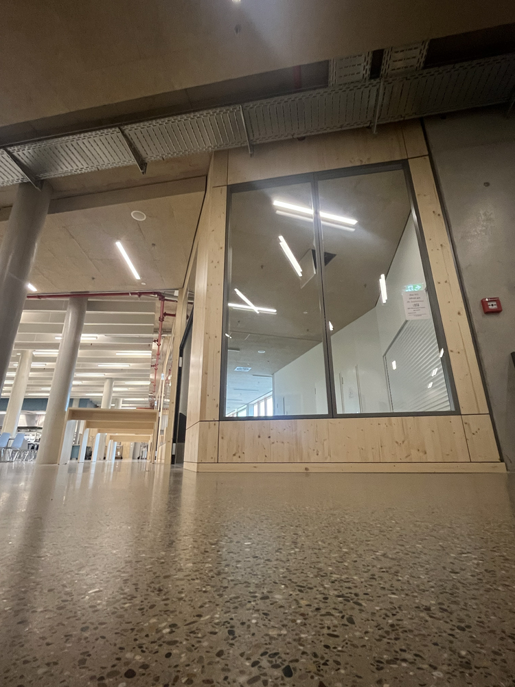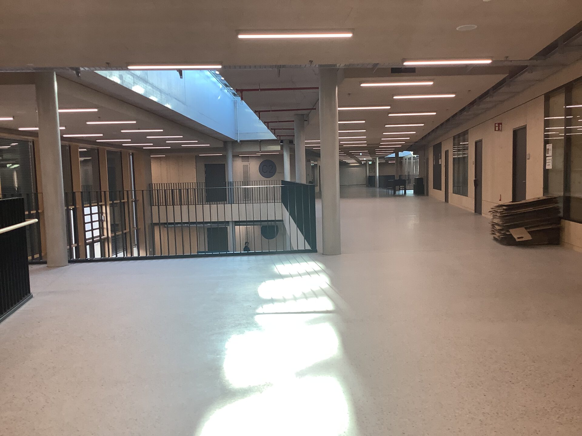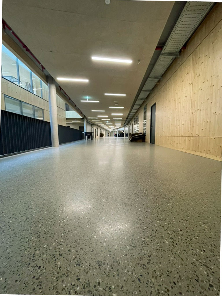 Eine Magistrale ist eine Art Hauptstraße, die verschiedene Bereiche miteinander verbindet, in unserem Fall z.B. die verschiedenen Jahrgangshäuser bzw. Fachbereiche auf einem Stockwerk. Die Magistralen sind aber auch Kommunikations- und Begegnungsräume, die alle nutzen dürfen.
