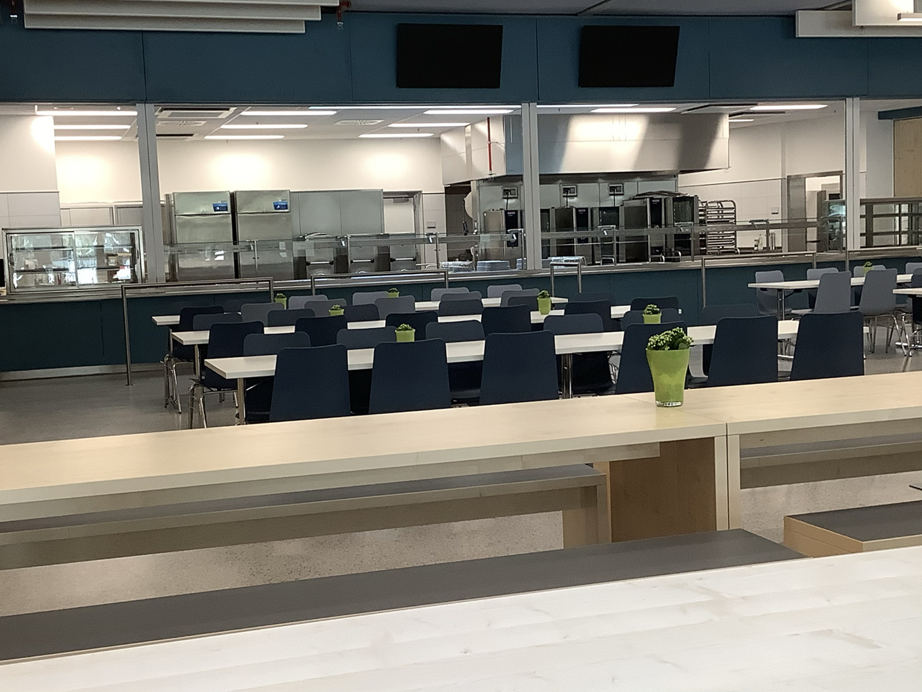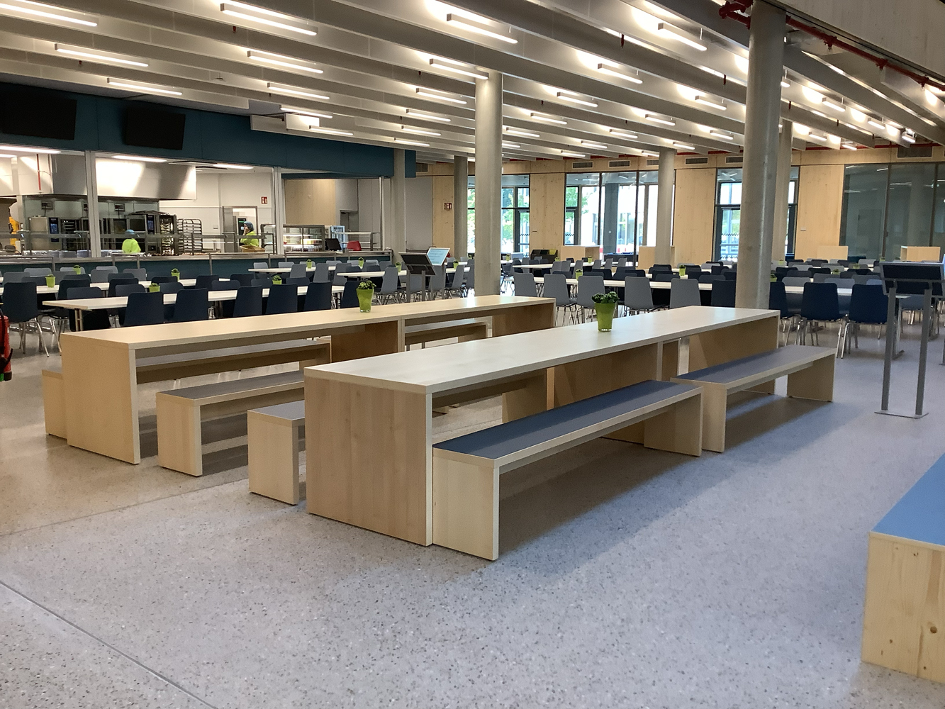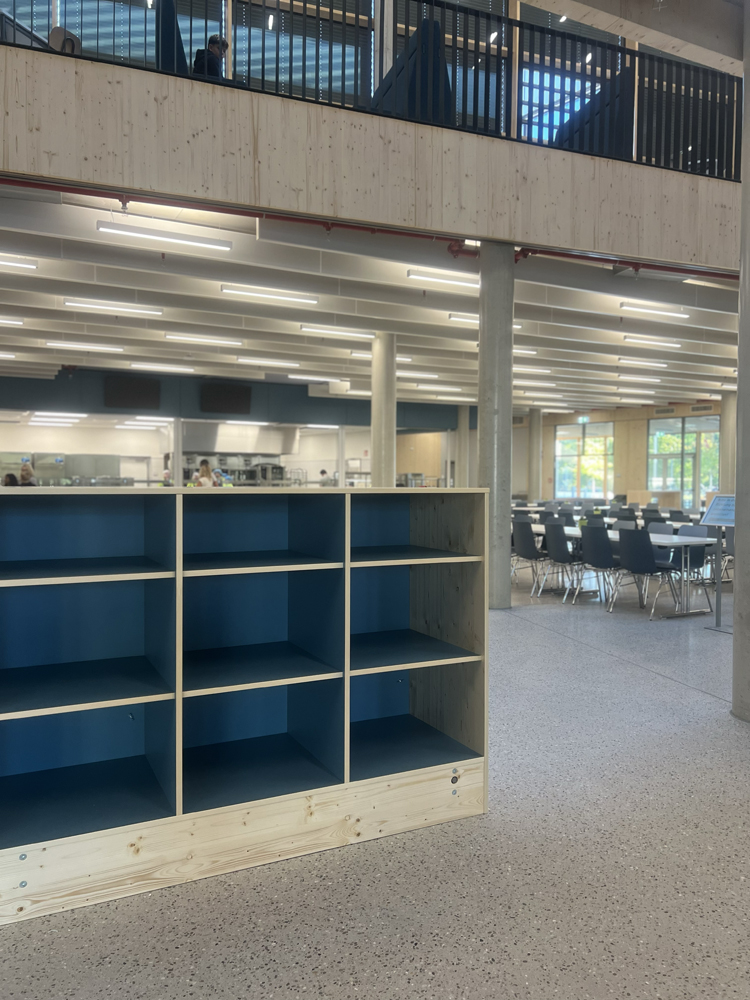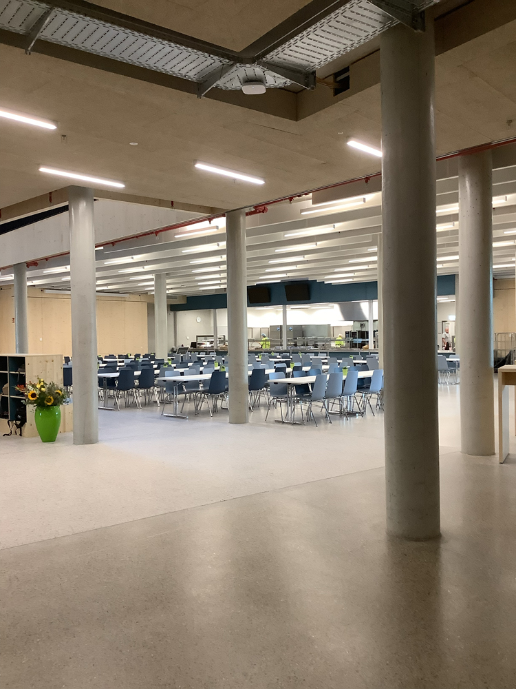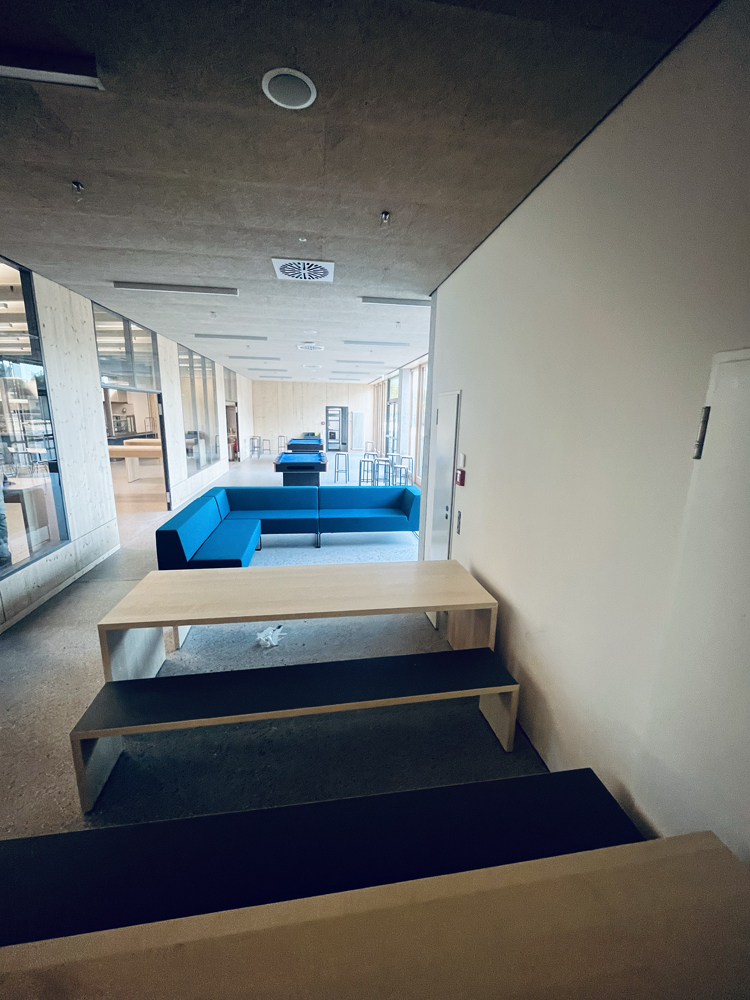 Ein weiteres Herzstück unserer Schule ist die Mensa, in welcher alle Mitglieder unserer Schulgemeinschaft zum Essen zusammenkommen. Auch das „Billi“, der durch Schüler*innen betriebene Kiosk mit Billard-Tischen, ist ein zentraler Begegnungsraum im Neubau.