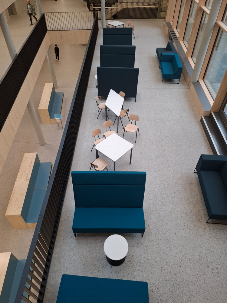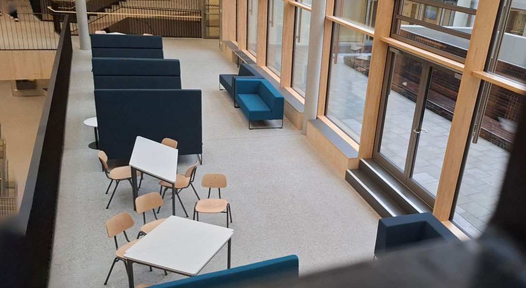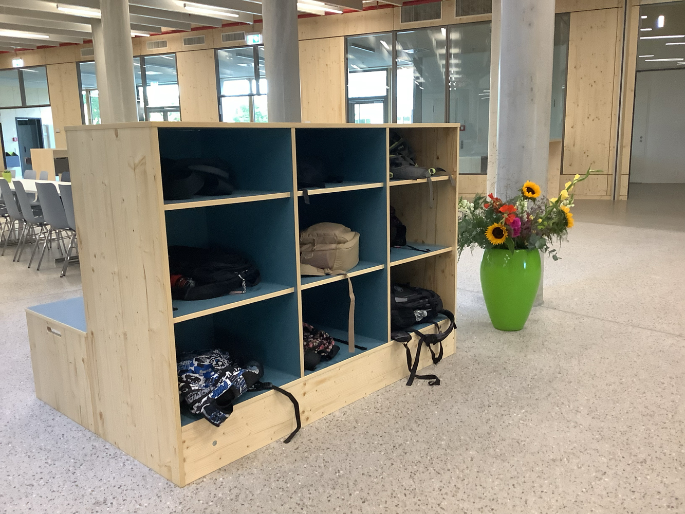 Alle Jahrgangshäuser und auch die Oberstufe haben einen eigenen offenen Bereich, der sowohl als Lernort dient als auch einen Aufenthaltsraum während der Pausen bietet.